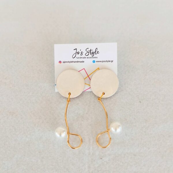 Χειροποίητα σκουλαρίκια από ξύλο, μέταλλο και πέρλες, που συνδυάζουν τη διαχρονική κομψότητα του κλασικού με την φρέσκια αισθητική του σύγχρονου.