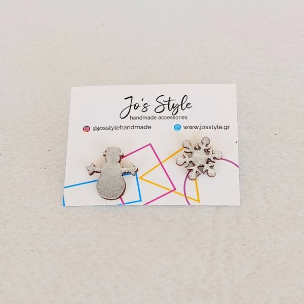 Χειροποίητα ξύλινα σκουλαρίκια με χριστουγεννιάτικα σχέδια, ζωγραφισμένα στο χέρι.